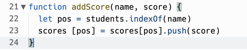 I checked the syntax and everything looks fine. It had also run OK with the previous test when it averaged the first set of scores in the score array.